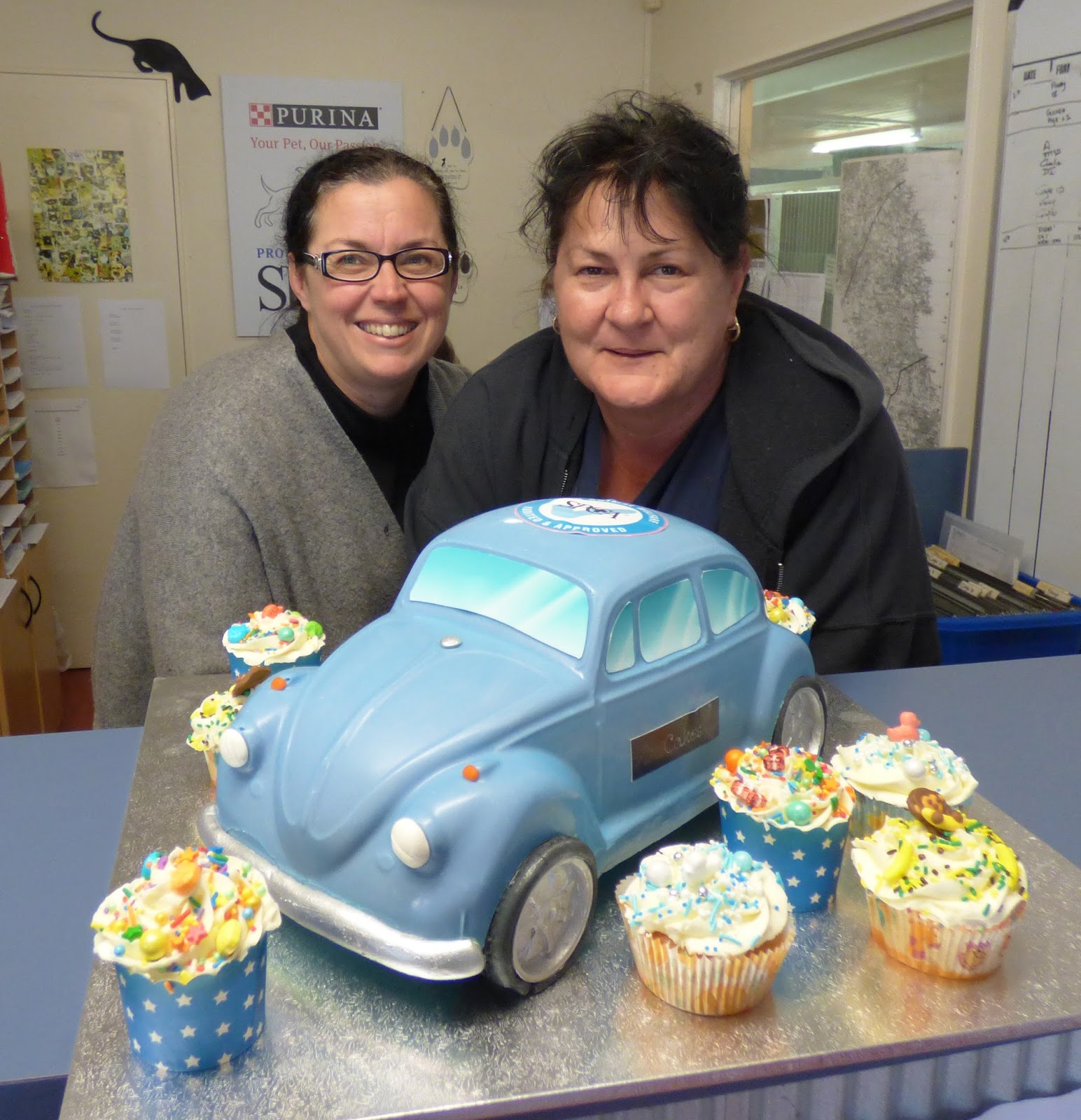 I recently took a trip to the Whangarei SPCA to deliver some cupcakes and chocolate VW cars to Andrea (manager for SPCA Whangarei at right) and the staff/volunteers who work so tirelessly. I felt they deserved a treat.