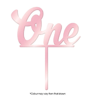 Number One 1 Pink Rose Mirror Acrylic cake topper pick