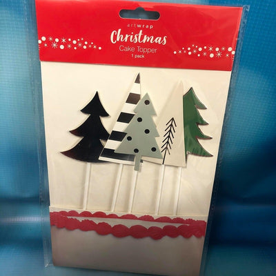 Forest of 5 individual Christmas trees cake topper picks