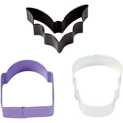 Bat Tombstone and Skull 3 pc Halloween cookie cutter set by Wilton