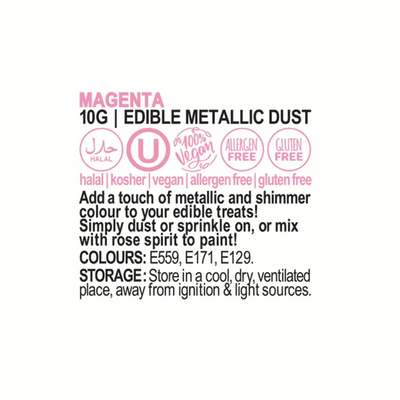 Vivid Magenta 10g pot Edible Metallic lustre dust