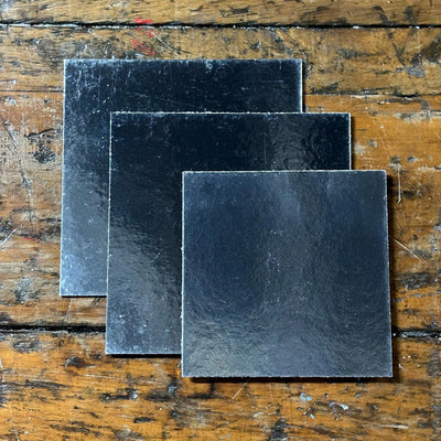 Cake card discs available in round or square. These are thin foil covered cards, used for stacking cake tiers. 2mm thick.
