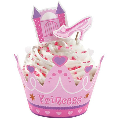 Cupcake wrappers and picks set PINK PRINCESS CASTLE AND SLIPPERS