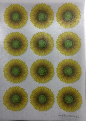 Wafer paper sheet 12 yellow flowers gerbera sunflower type