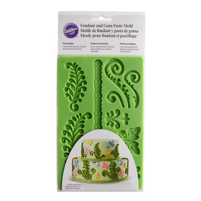 Fern Fondant and GumPaste silicone mould Korus fern butterfly dragonfly & border