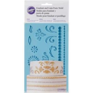Damask gumpaste and fondant silicone mould and pearl bead border