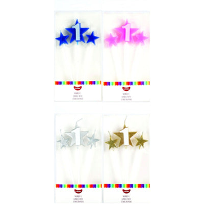 Age number candle long wooden pick - Number 6 - Blue Glitter
