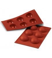 Silicone sphere moulds in a wide range of diameters. Place two hemispheres together to form a complete sphere/ball. Silicone moulds can be frozen, or baked with