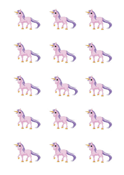 Edible icing sheets printed with unicorn themed designs. A wide range of sizes and colours. Suitable for cakes cupcakes and cookies.