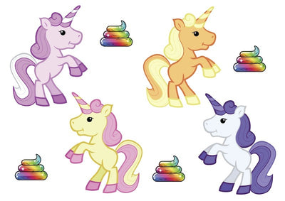 Character edible icing image sheet Unicorns and rainbow poop