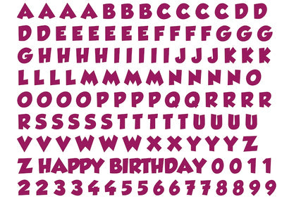 A4 edible icing image sheet Alphabet letters and numbers Mauve