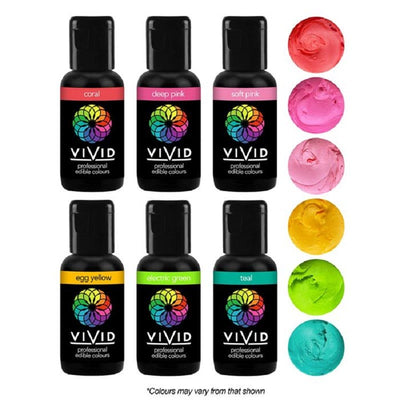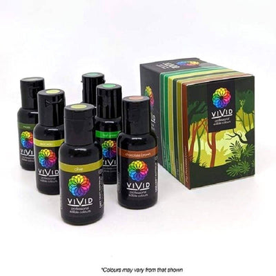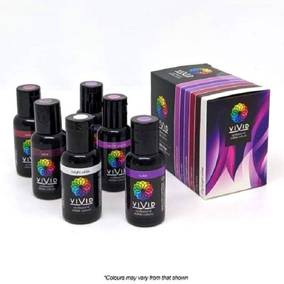 Vivid produces a wide range of edible colours for cake decorating. Bright vivid lustres and a huge range of gel paste food colouring