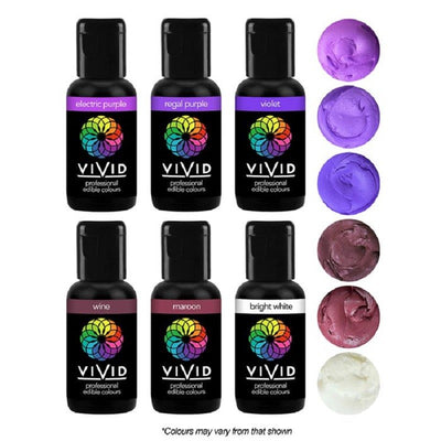 Vivid 6 pack gel paste food colouring 21g bottles Purple Reign