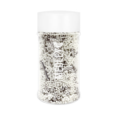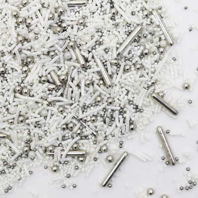 White sprinkles in a wide variety of shapes and sizes. Add an elegant touch to your baked sweet treats