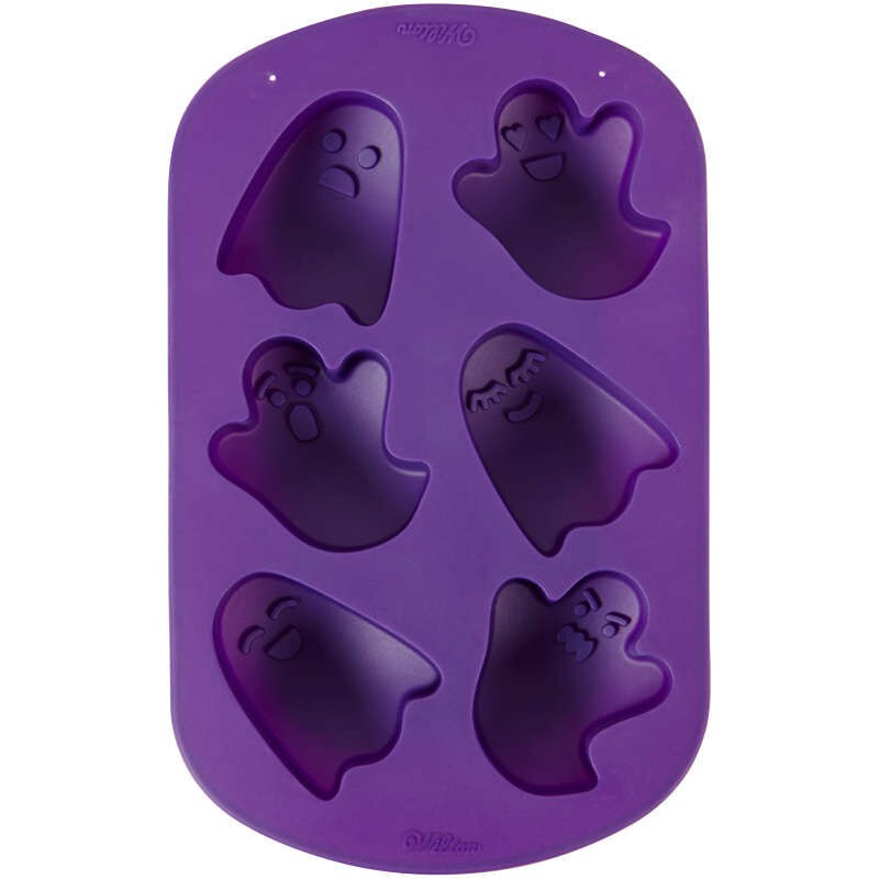 Making ghost-shaped treats for Halloween or any spooky occasion is easy with this silicone pan