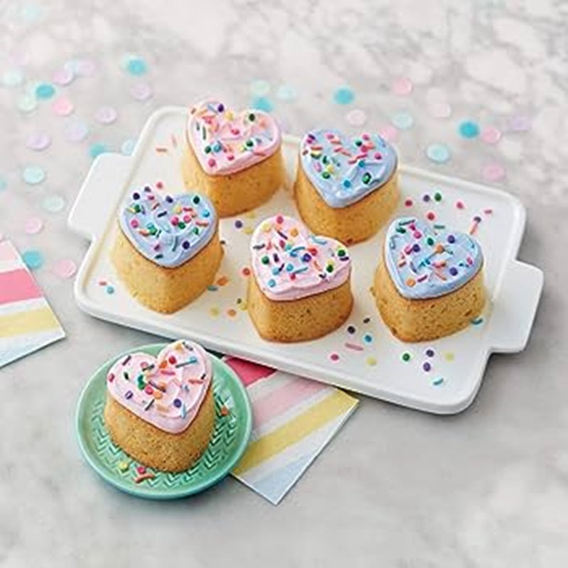 Six-cavity pan is 10 5/8 x 7 in.; individual cavities are 2 1/2 x 2 1/2 x 1 1/4 in. deep.
