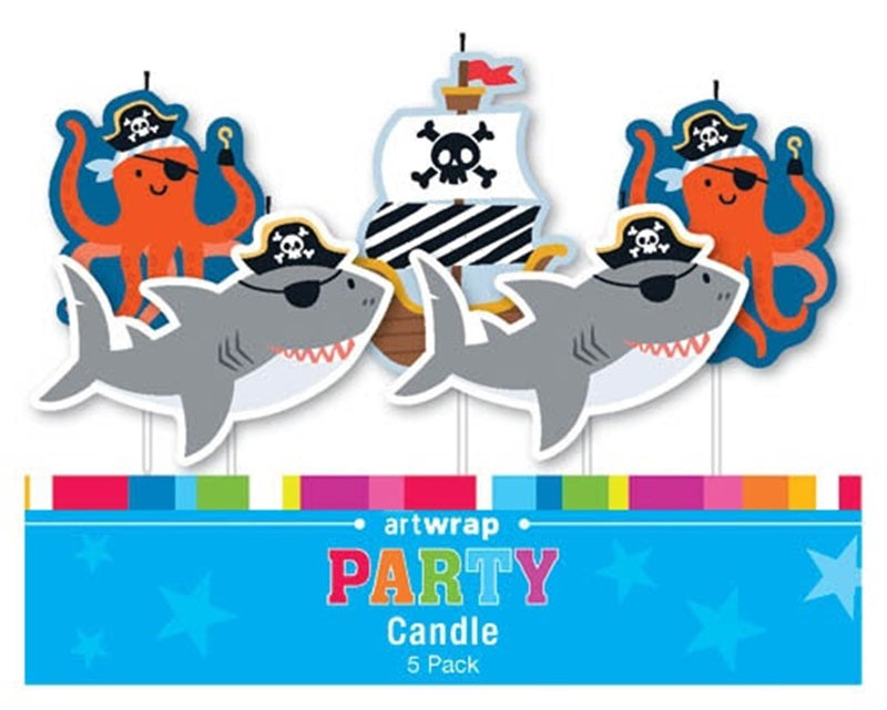 Ahoy Pirate sharks ships and Octopus 5 pick candle set