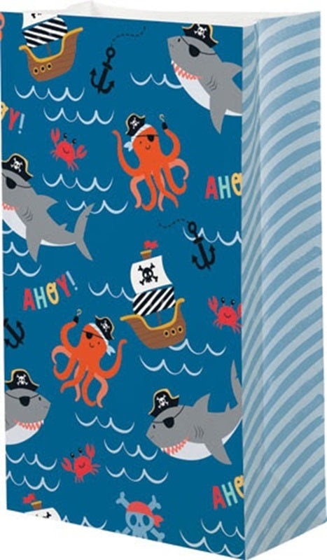 Sail into the perfect party with these Ahoy Pirate themed paper bags! Featuring sharks, ships, and an octopus, these 8 bags are ready to hold all your treasures (or party favours). Get ready to plunder and have a swashbuckling good time!