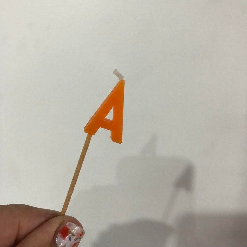 Alphabet or numeral candle on wooden pick Letter A Orange