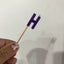 Alphabet or numeral candle on wooden pick Letter H Purple