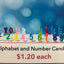 Choose from a rainbow of alphabet and number candles. Each on a small wooden pick. The number/letter itself is aprx 3cm high, which can vary ever so slightly by letter or number. Spell out your name or special message