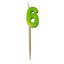 Alphabet or numeral candle on wooden pick NUMBER 6 Green