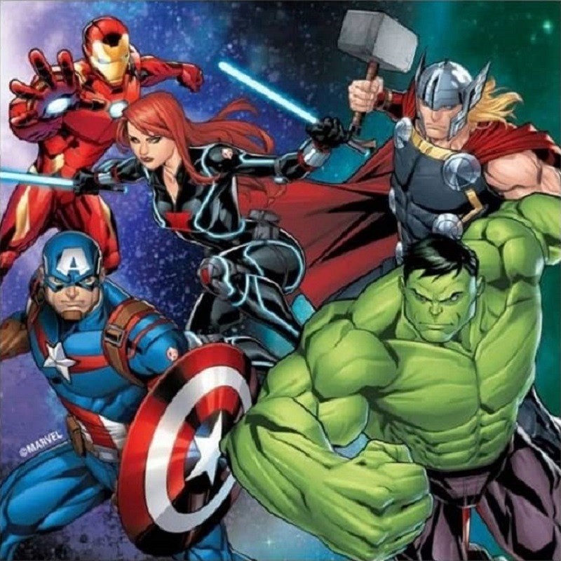 Avengers party napkins. Pack of 20. 33x33cm prior to folding