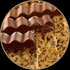 Moist light cake made with fresh bananas. Topped with chocolate ganache. Finished with dairy milk chocolate flakes