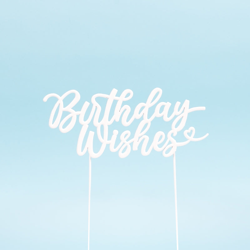 Pearlised White Metal Cake Topper - BIRTHDAY WISHES