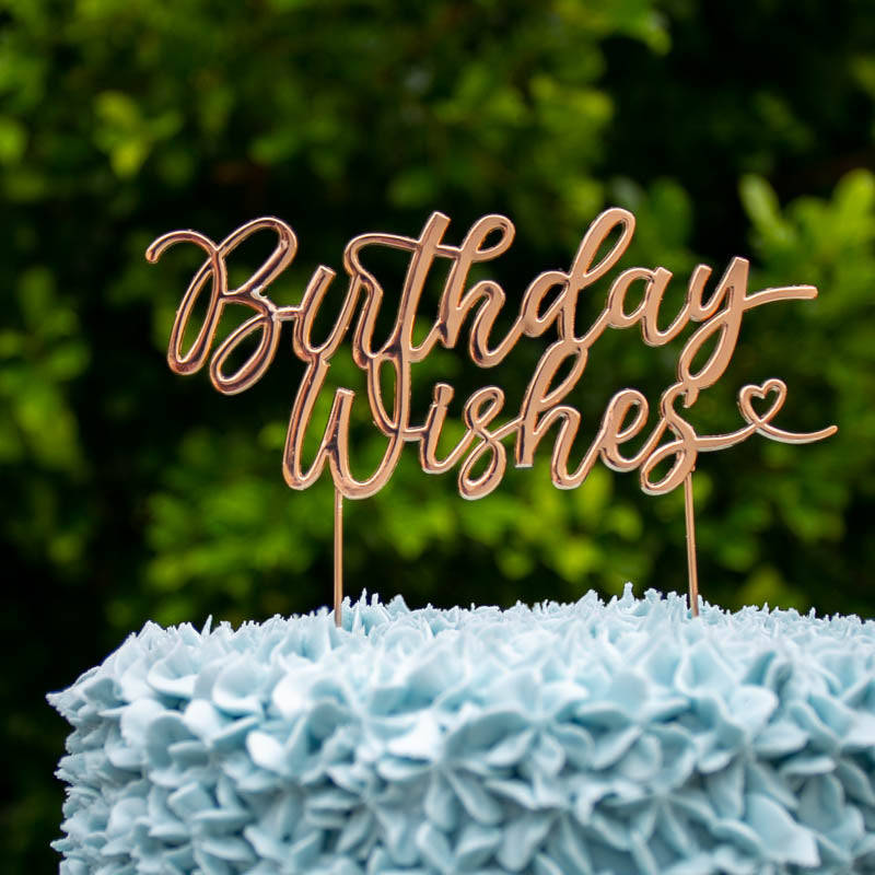Rose Gold Metal Cake Topper - BIRTHDAY WISHES