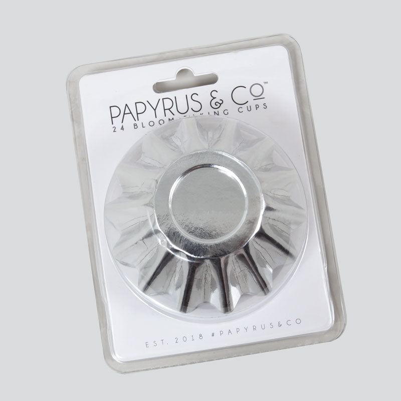 Metallic Silver Bloom Baking Cups in PVC Box - 24 pack