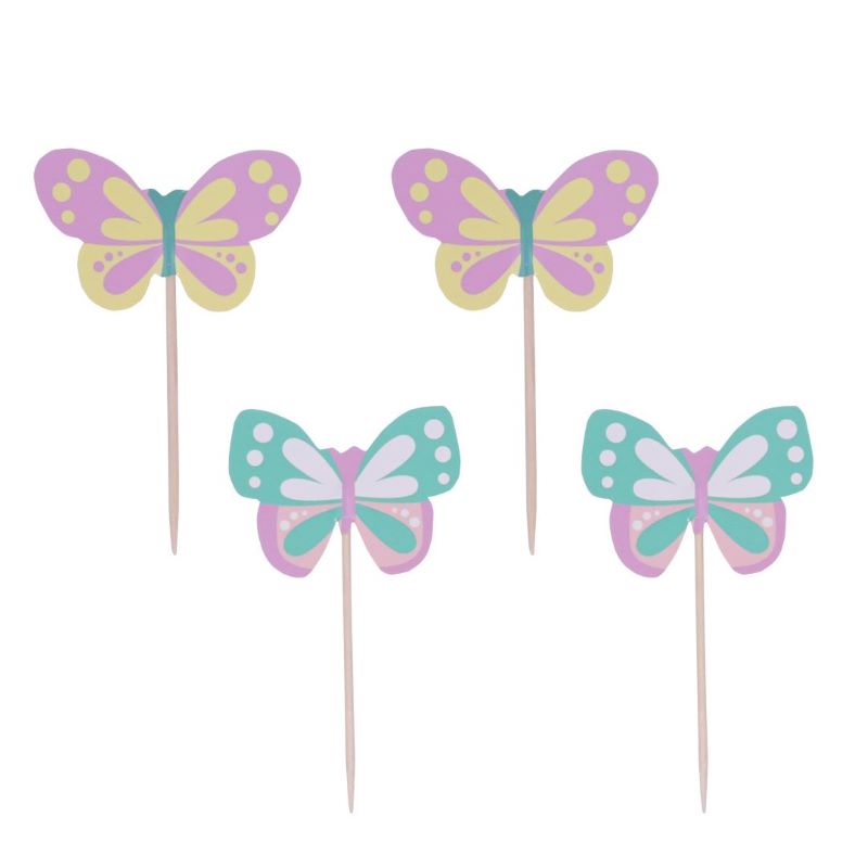 Pack of 24 double-sided paper toppers featuring a Butterfly design. Paper measures approx 31 x 51mm, wooden stick 45mm