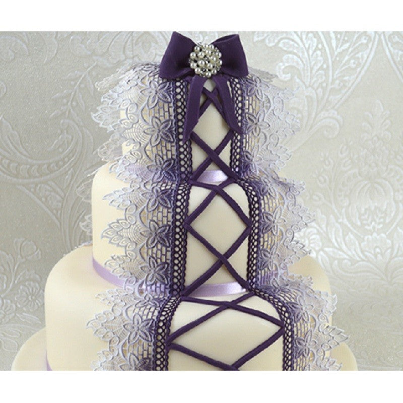 A truly outstanding lace design, idyllic for tiered cakes for an authentic oriental touch. Let the lace hang to create a peacock feather-like border or flip around to ensue an oriental flame design.