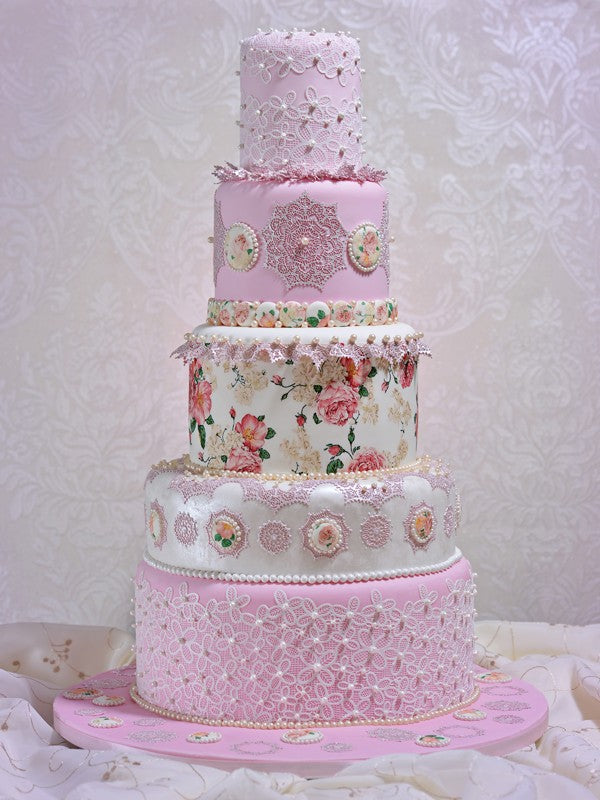 The Victoriana Lace Cake Lace mat is a brand new Cake Lace mat designed by multi-award winning Claire Bowman. It is the first mat which incorporates an "endless" design, an intricate pattern which repeats across the mat, and has been designed to flow seemlessly across your cake. The beautiful floral pattern will look simply stunning on wedding cakes, and any other cake you come to create.