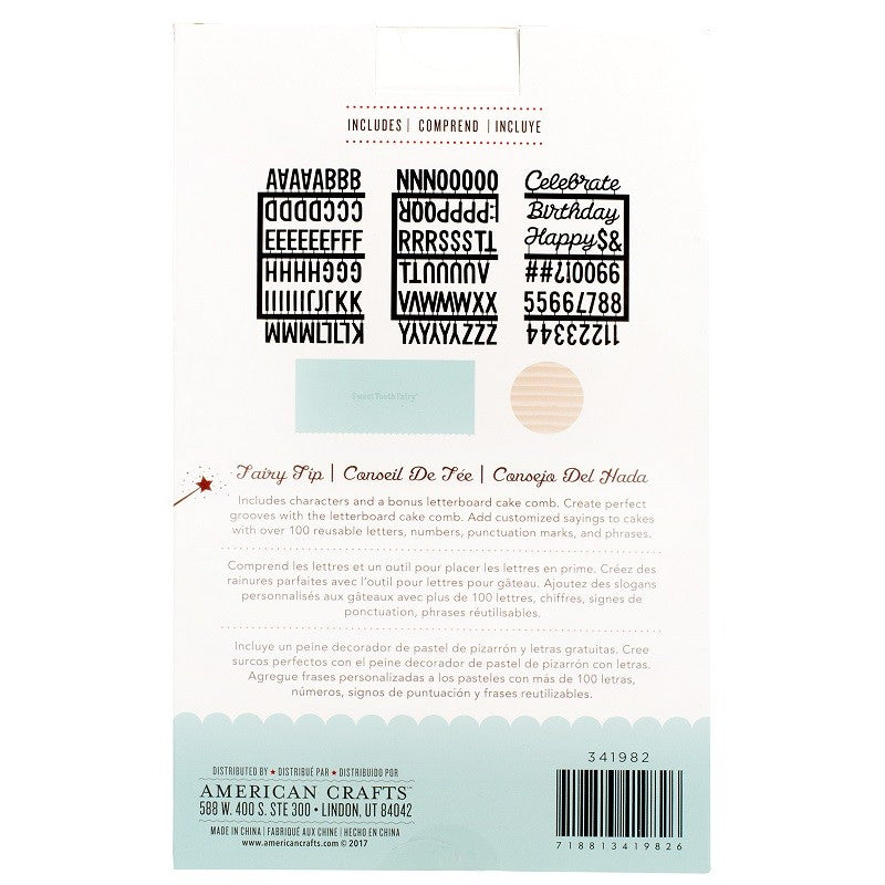 Kit includes over 100 letters, numbers, punctuation marks, and phrases, plus includes the letterboard cake comb, which adds grooves to your buttercream icing.