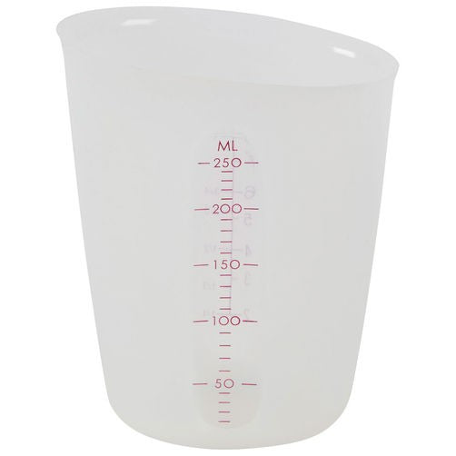 Melt and measure melting chocolate or Candy Melts candy in this silicone microwave-safe container. Sides have grooves for a secure grip, and measure up to 1 cup or 8 oz. of melted candy. Just pour it out using the convenient spout, and squeeze the bottle to remove any hardened candy for easy cleanup.