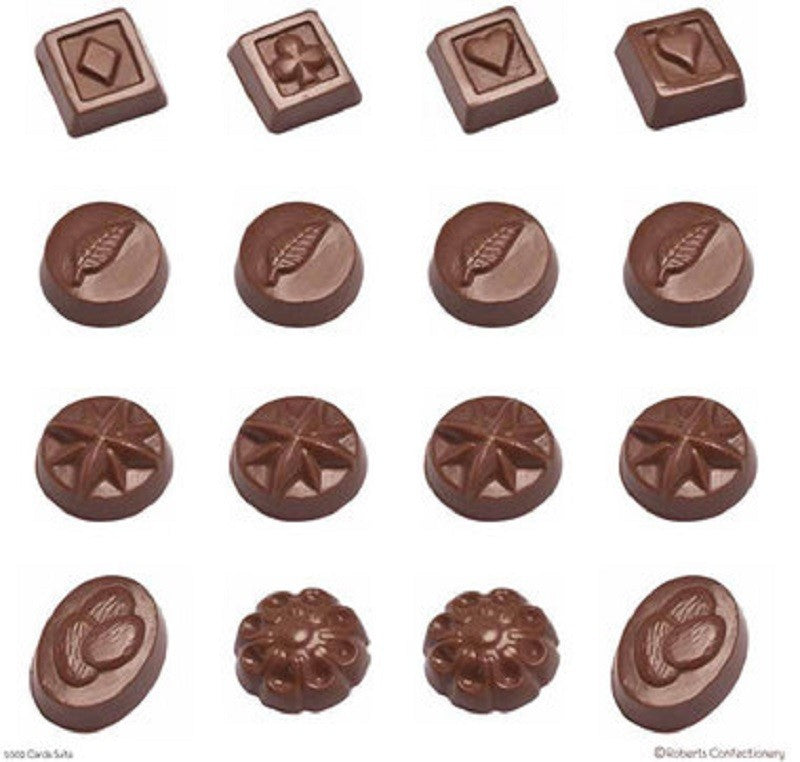 Chocolate mould measures 21.5cm square. Cavities fit within that frame. Foodsafe plastic. Deep mould to allow for fillings.