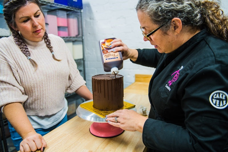 Bakels chocolate truffle can be used instead of ganache, it's also great for dipping strawberries and other fancy treats. Simply microwave in the bottle or rest the bottle in a pot of water to soften. Also makes a great filling for between layers, or as a complete cake covering, even under fondant.