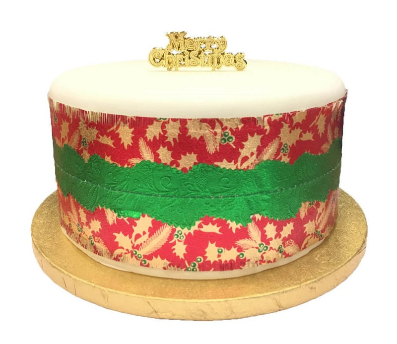A quick, effective and easy way to decorate your Christmas cake. Wrap frill around your cake and secure with icing or tape.