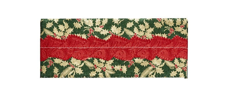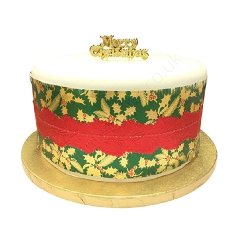 Lovely foil cake frill with holly design and an embossed central foil band.