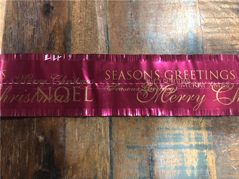 1m long. Wine Red with Christmas greetings message, repeated along length 82mm wide