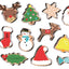 Cutters include: Christmas tree, Snowflake, Reindeer, Reindeer Face, Gingerbread man, Santa face, Santa Hat, Stocking, Snowman, House, bell, candy cane, mitten, holly leaf and wrapped sweet.