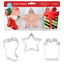 - 3 Piece set; stocking, star & gift cookie cutters.