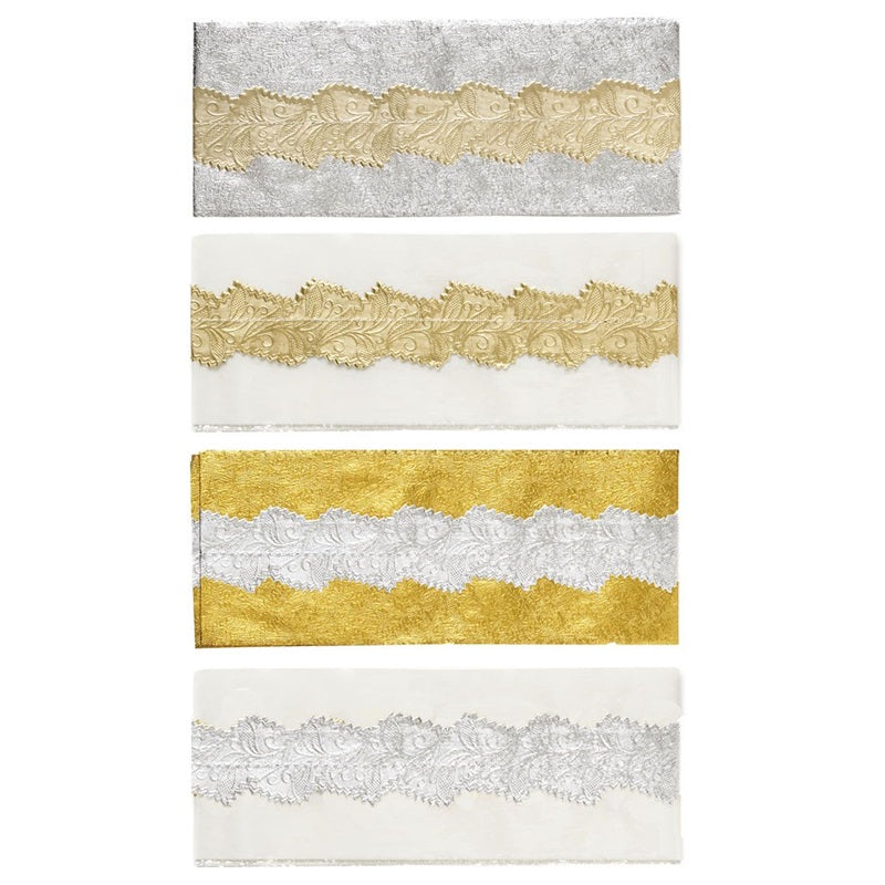 These assorted cake frills feature an embossed foil in modern seasonal metallic colours. A simple and effective way to adorn your Christmas or celebration cake.