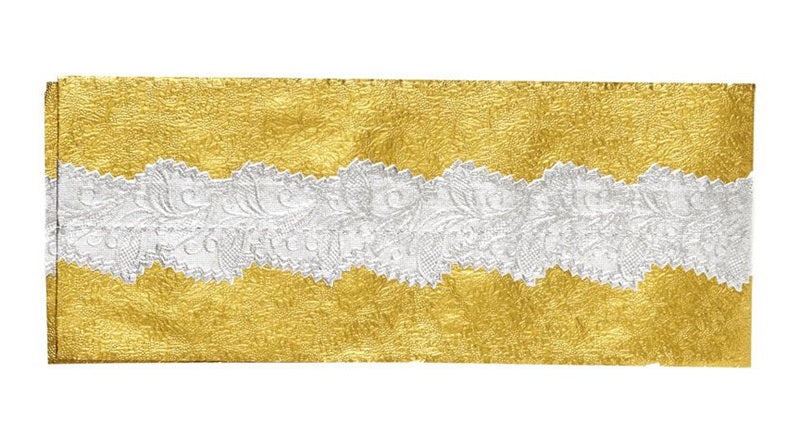 Pre-cut length fits up to an 11" round or 8" square cake.