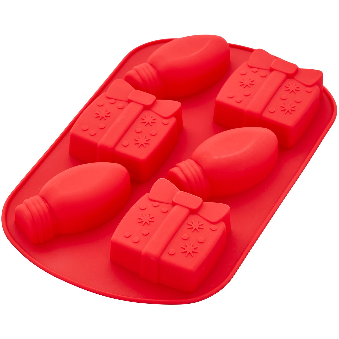 Christmas Shapes Silicone Treat Mould 6 Cavity Light bulbs and gifts presents