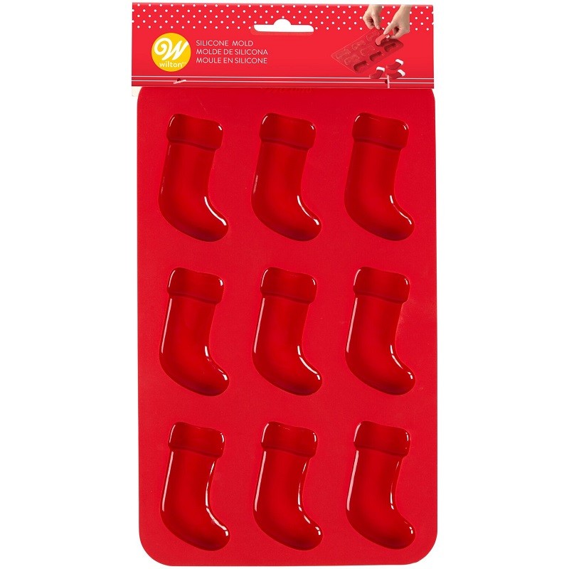 The Wilton silicone candy mould stocking is the perfect mould for making quick and easy treats for the holidays! With this mould you can make 9 stockings at once. The mould is easy to use! Simply fill the mould with melted candy melts and let it harden. The mould contains 9 cavities.