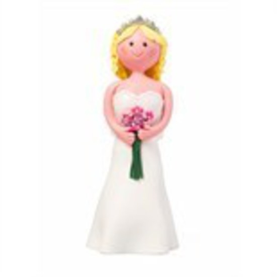 This claydough bride is absolutely stunning with a beautifully detailed dress, coiffed blonde hair with ringlets, tiara, and bouquet of flowers which you can dust or paint to suit any colour scheme.pretty little net veil attached