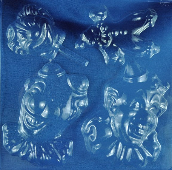 Chocolate mould with clown lollypop shapes.