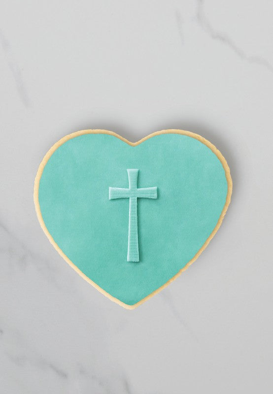 COO KIE Embosser Stamp - Cross (photo shows image embossed on fondant which can then be cut to any shape, besides a heart)